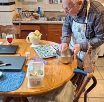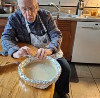 Joe did a bit to cooking to help out.