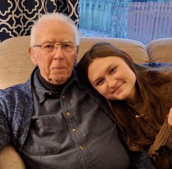 Michael holding a picture of her father
