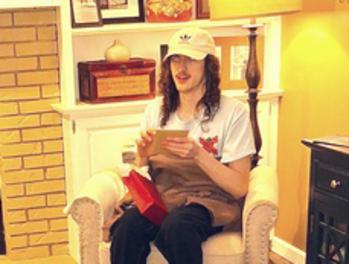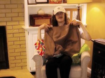 :Laura & friend in costume at the hair salon.
