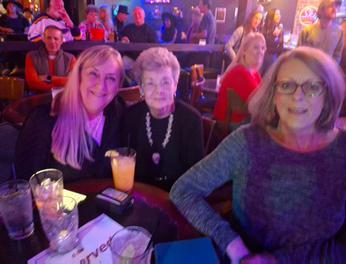 Halloween is Tony's birthday. Tony had a concert that night and Linda (who were here from California) and I decided to attend his concert. He was SO surprised to see us there. It was a fun night. He is an excellent Bass Guitar player. and the band was great to see. Carla has her cat ears on and I have my skeleton necklace on to celebrate Halloween. Carla's sister and brother were there, too.